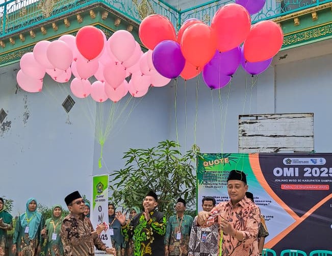 kemenagsampang.com-Kepala Kantor Kementerian Agama (Kemenag) Kabupaten Sampang, Fandi, secara resmi membuka Olimpiade Madrasah Indonesia (OMI) jenjang Madrasah Ibtidaiyah (MI) tingkat kabupaten, Rabu (10/9/2025). Pembukaan ditandai dengan pelepasan balon ke udara di halaman acara, menandai dimulainya rangkaian kompetisi.