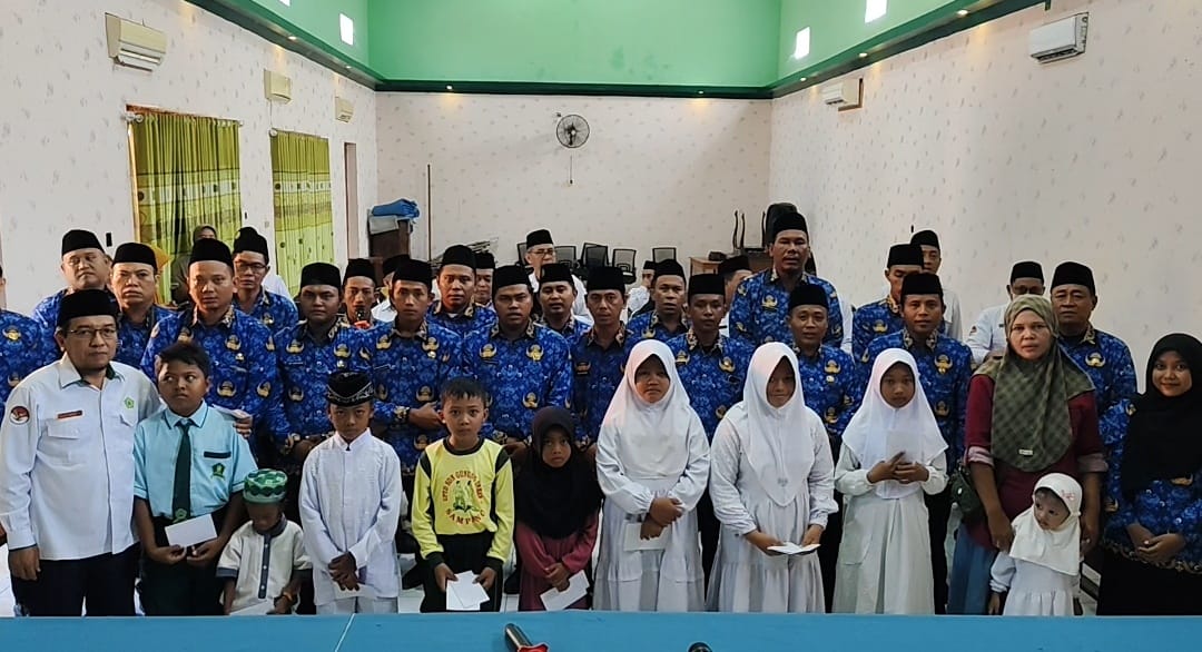 kemenagsampang.com-Suasana haru menyelimuti Aula Kantor Kementerian Agama (Kemenag) Kabupaten Sampang saat puluhan anak yatim piatu menerima santunan dari Kepala Kemenag Sampang, Fandi, Selasa (7/10/2025).