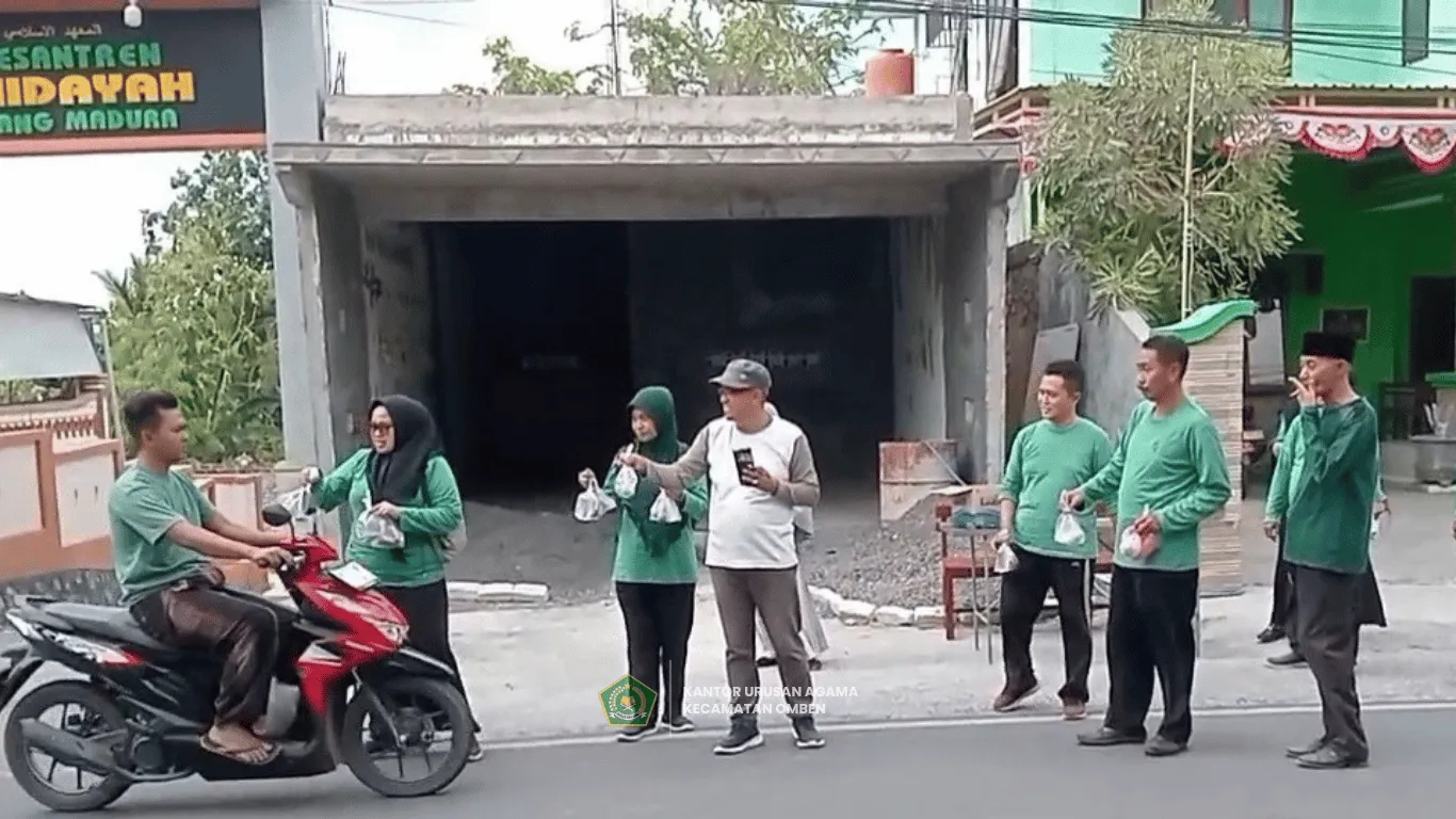 Usai bersih-bersih, KUA Omben melanjutkan kegiatan dengan program “Jum’at Berkah”, berbagi makanan kepada jamaah dan masyarakat sekitar.