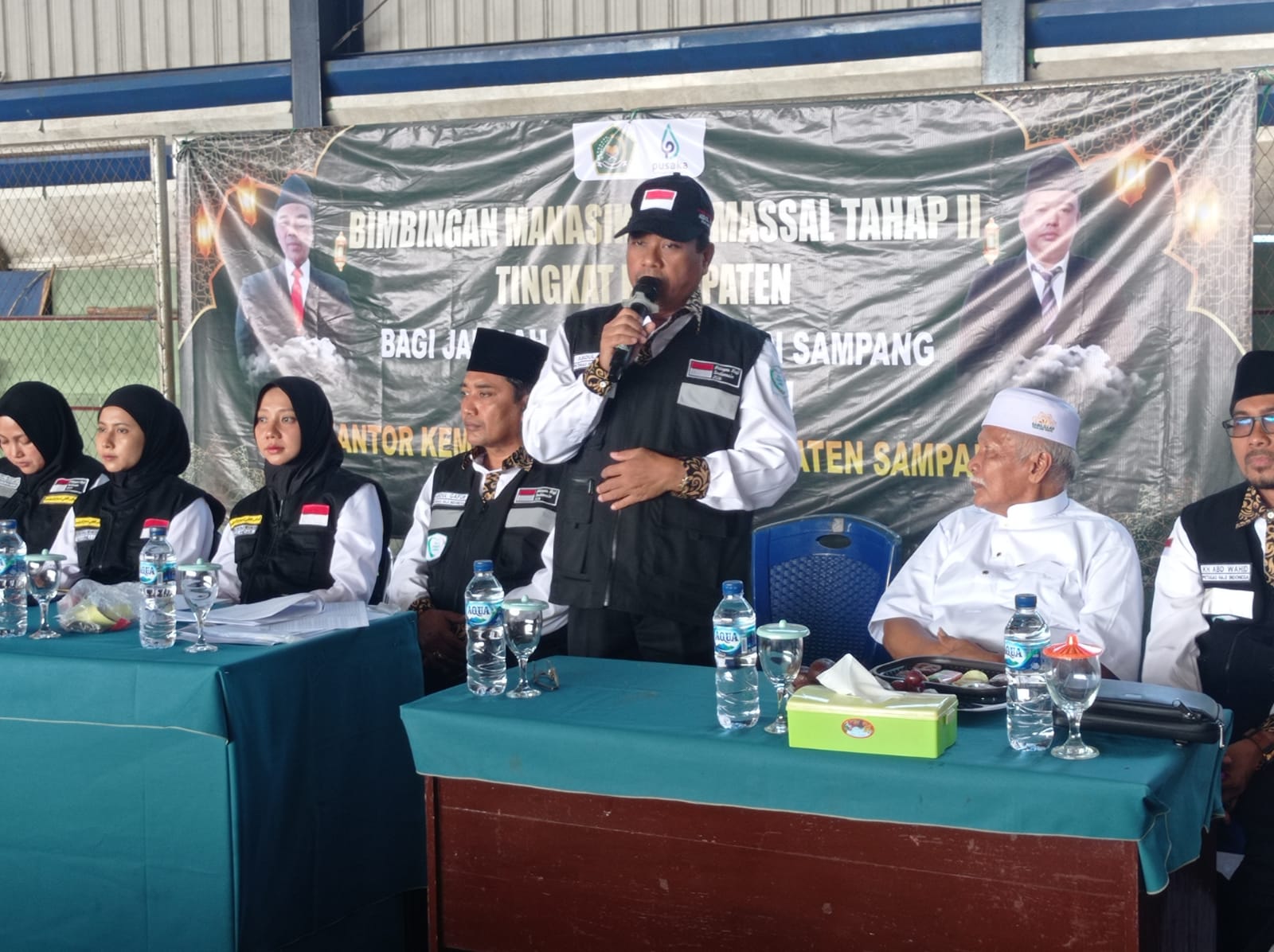 Saat membuka acara, Kepala Kantor Kementerian Agama (Kemenag) Kabuaten Sampangt, Abdul Wafi, menyampaikan praktek manasik haji merupakan sebuah kegiatan penting bagi jamaah haji yang bertujuan untuk mempersiapkan diri secara maksimal sebelum menjalani ibadah haji secara fisik.