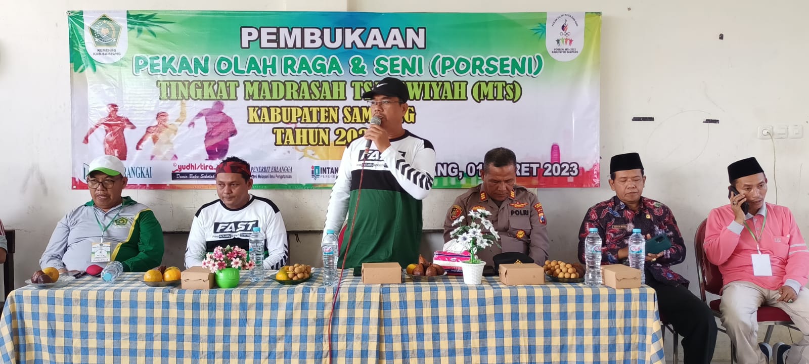Dalam sambutannya Kepala Kemenag Sampang menyampaikan ucapan selamat atas terselenggaranya kegiatan porseni jenjang MTs Tingkat Kabupaten Sampang.