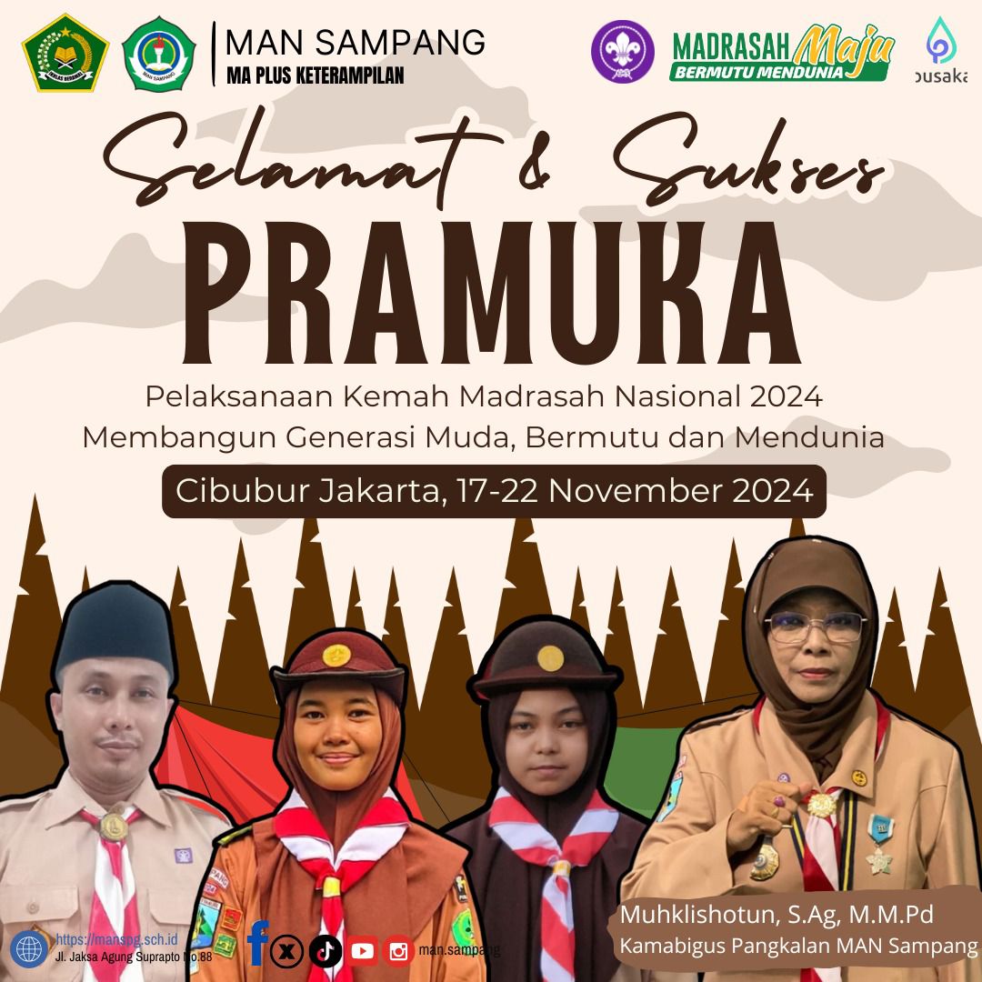 Senada dengan itu, Pembina Pramuka MAN Sampang, Sukur, mengatakan bahwa keduanya memiliki semangat juang yang tinggi dan selalu siap menghadapi tantangan. Kemah Madrasah Nasional ini tentu menjadi ajang yang sangat tepat bagi mereka untuk mengembangkan diri lebih jauh, baik dalam hal kepemimpinan, kerjasama, maupun penguatan karakter.