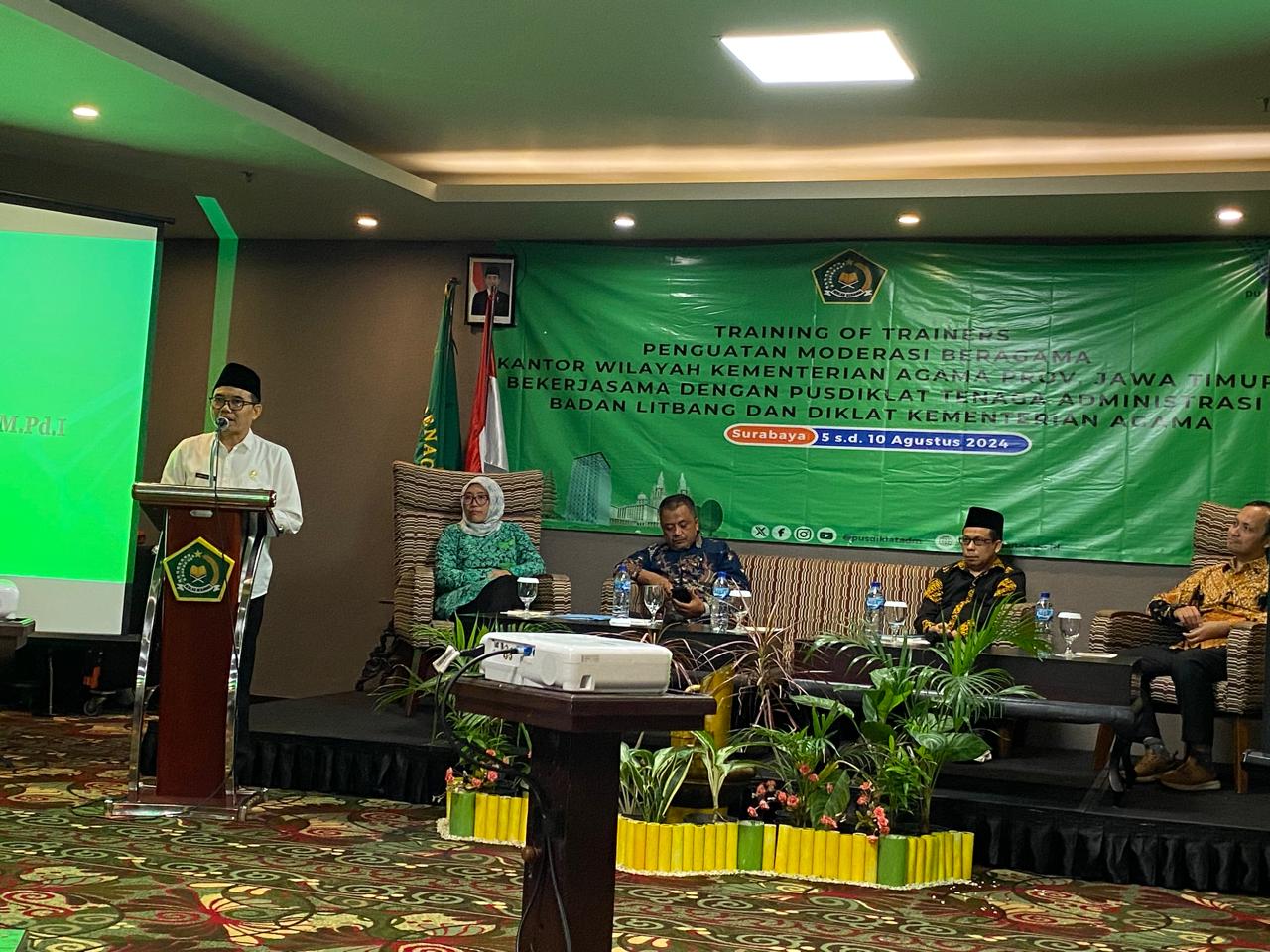Kegiatan yang bekerjasama dengan Badan Penelitian Pengembangan dan Pendidikan dan Latihan (Balitbang dan Diklat) Kemenag RI ini bertujuan untuk melahirkan trainer dan kader moderasi yang kompeten dan militant di lingkungan Kemenag Provinsi Jawa Timur