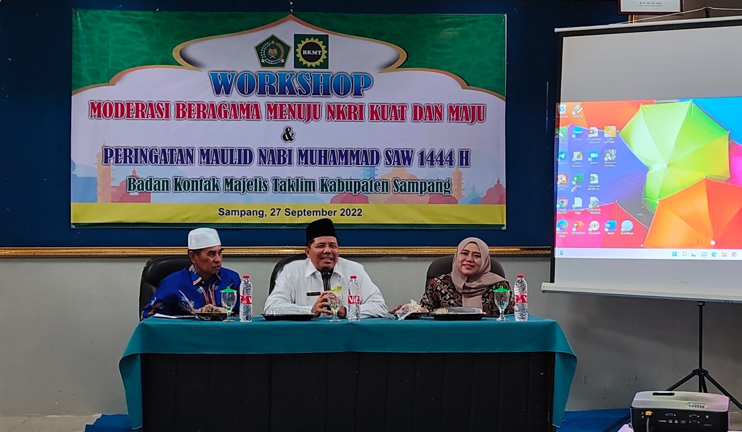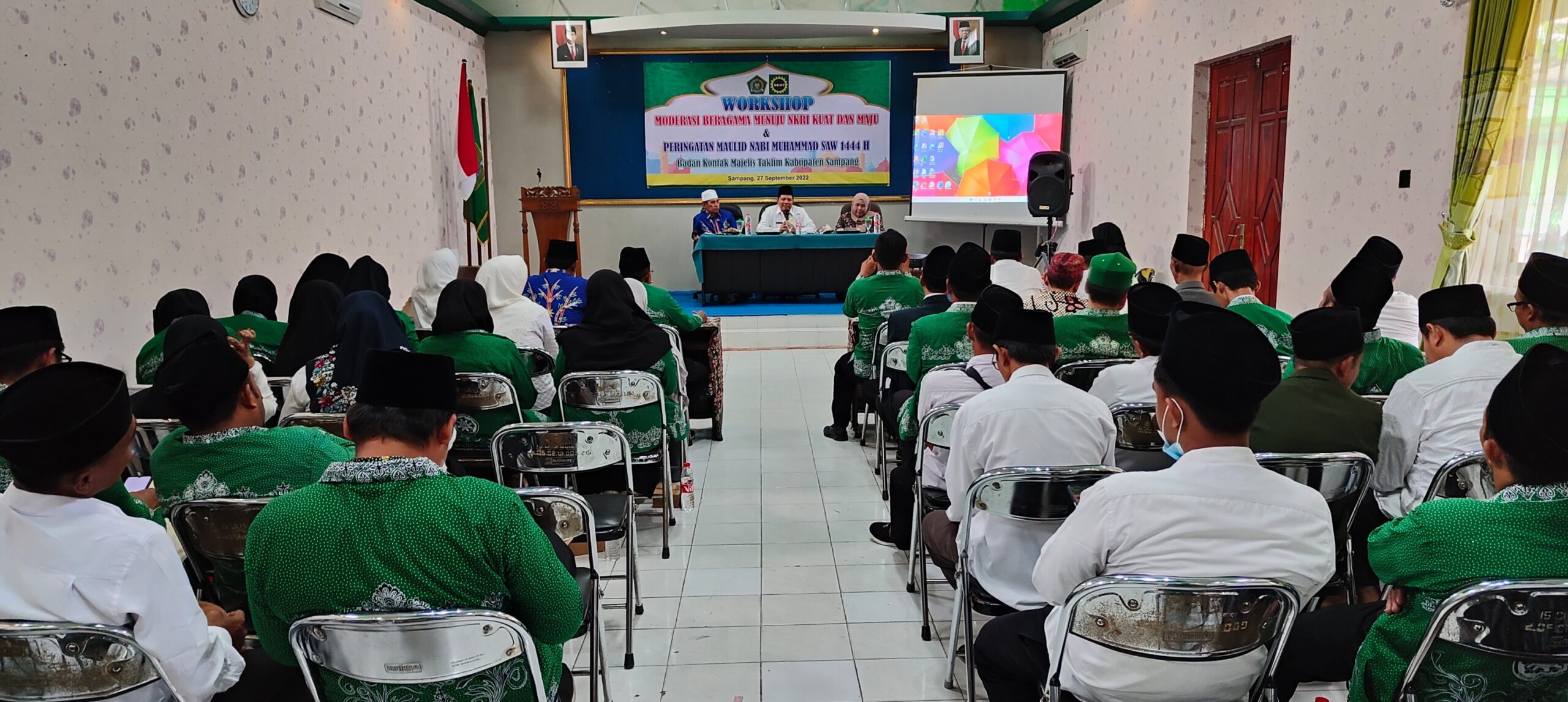 kemenagsampang.com -Sebanyak 120 peserta mengikuti workshop moderasi beragama Badan Kontak Majleis Taklim (BKMT) Sampang di Aula Kantor Kementerian Agama Kabupaten Sampang, Selasa (27/09/2022). Dengan tema moderasi beragama menuju NKRI kuat dan maju.